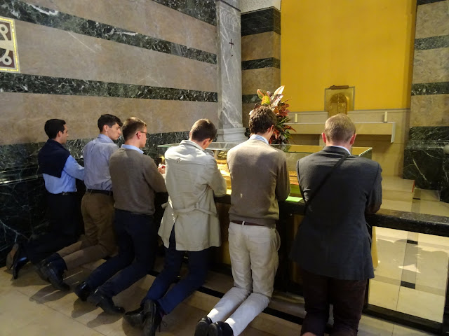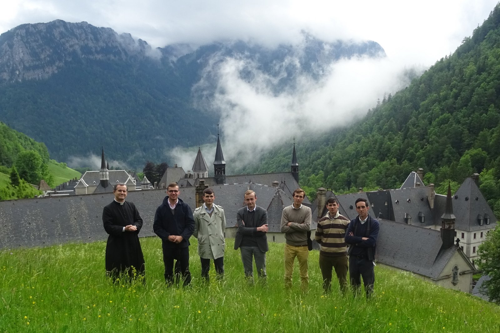 Au même moment, les séminaristes francophones de première année passent quatre journées dans notre magnifique maison de St-Jorioz en Savoie, au flanc du Semnoz qui surplombe le lac d'Annecy. C'est l'occasion de découvrir les lieux marqués par la sainteté de François de Sales et Jeanne de Chantal, dont les châsses se trouvent à la Visitation d'Annecy. La région a connu une riche activité catholique, de St Bernard de Menthon et St Germain de Talloires au Moyen Age, jusqu'à la Vénérable Anne de Guigné au siècle dernier. Autant de visites et de prières pour les séminaristes, avec en bouquet final la découverte de la Grande Chartreuse, en Isère.