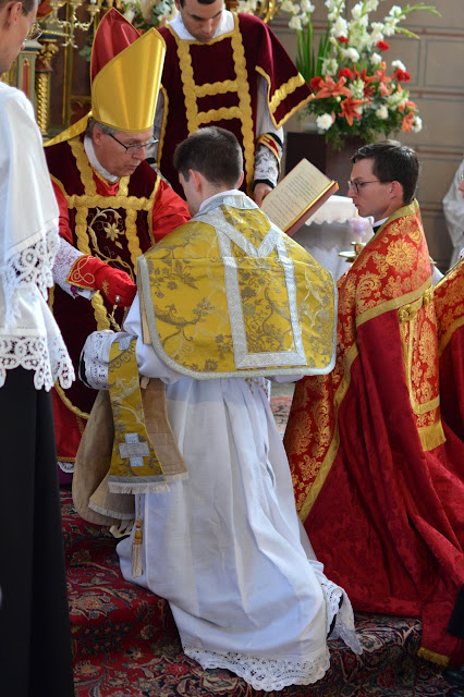 Comme l'an dernier, la cérémonie des ordinations sacerdotales a eu lieu ce samedi 29 juin dans l'église paroissiale d'Heimenkirch, à quelques kilomètres du séminaire. Le pontife était Mgr Czesław Kozon, évêque de Copenhague (le plus grand diocèse du monde puisqu'il s'étend à tout le Danemark, y compris le Groenland !).