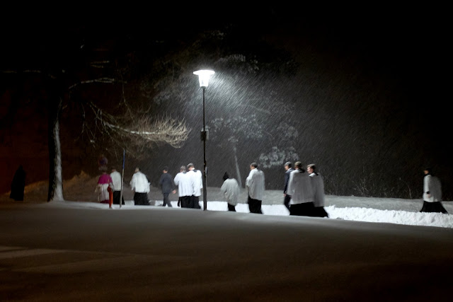 La formation de nos séminaristes est vraiment très complète ! Ils sont même entraînés à affronter les conditions climatiques les plus extrêmes, comme ici après les vêpres...