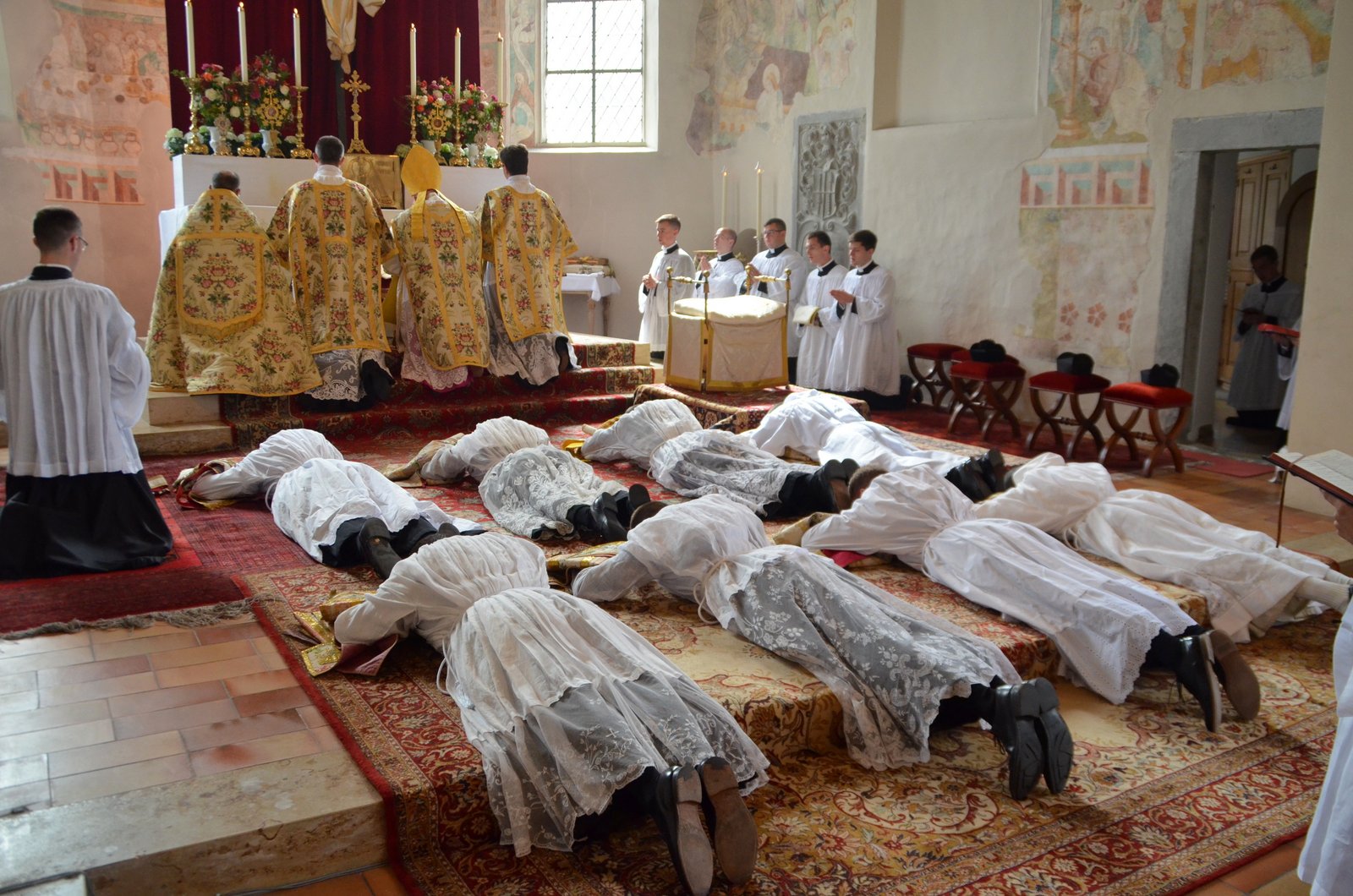 La FSSP compte ainsi sept nouveaux diacres : 4 Français (dont deux seront ordonnés prêtres à l'automne), un Brésilien, un Italien et un Polonais. Le huitième ordinand était un religieux d'origine suisse, membre de la Fraternité Saint-Vincent Ferrier, venu de Chémeré-le-Roi en Mayenne pour bénéficier lui aussi de l'ordination.