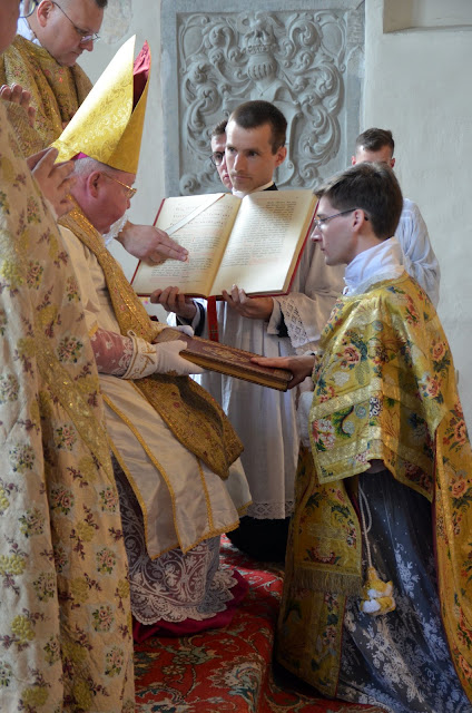 C'est Mgr Wolfgang Haas, archevêque de Vaduz au Liechtenstein, qui célébrait la messe pontificale, dans l'église paroissiale de Gestratz, assisté par l'abbé Patrick du Faÿ, recteur du séminaire, ainsi que par l'abbé Brice Meissonnier (diacre) et l'abbé Sven Conrad (sous-diacre).