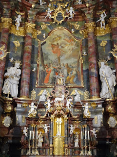 L'abbé José Calvin-Torralbo a prêché en latin sur son saint patron. Il s'est exprimé du haut de la chaire, en forme de proue de navire, exemple particulièrement spectaculaire de la fantaisie de l'art baroque bavarois...