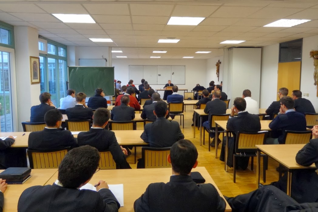 En ce samedi, au terme d'une semaine passée à Wigratzbad, l'abbé Alfredo Reyes-Barrios, supérieur de notre maison de Clermont dans les Landes, prêche aux séminaristes francophones la récollection mensuelle.