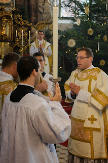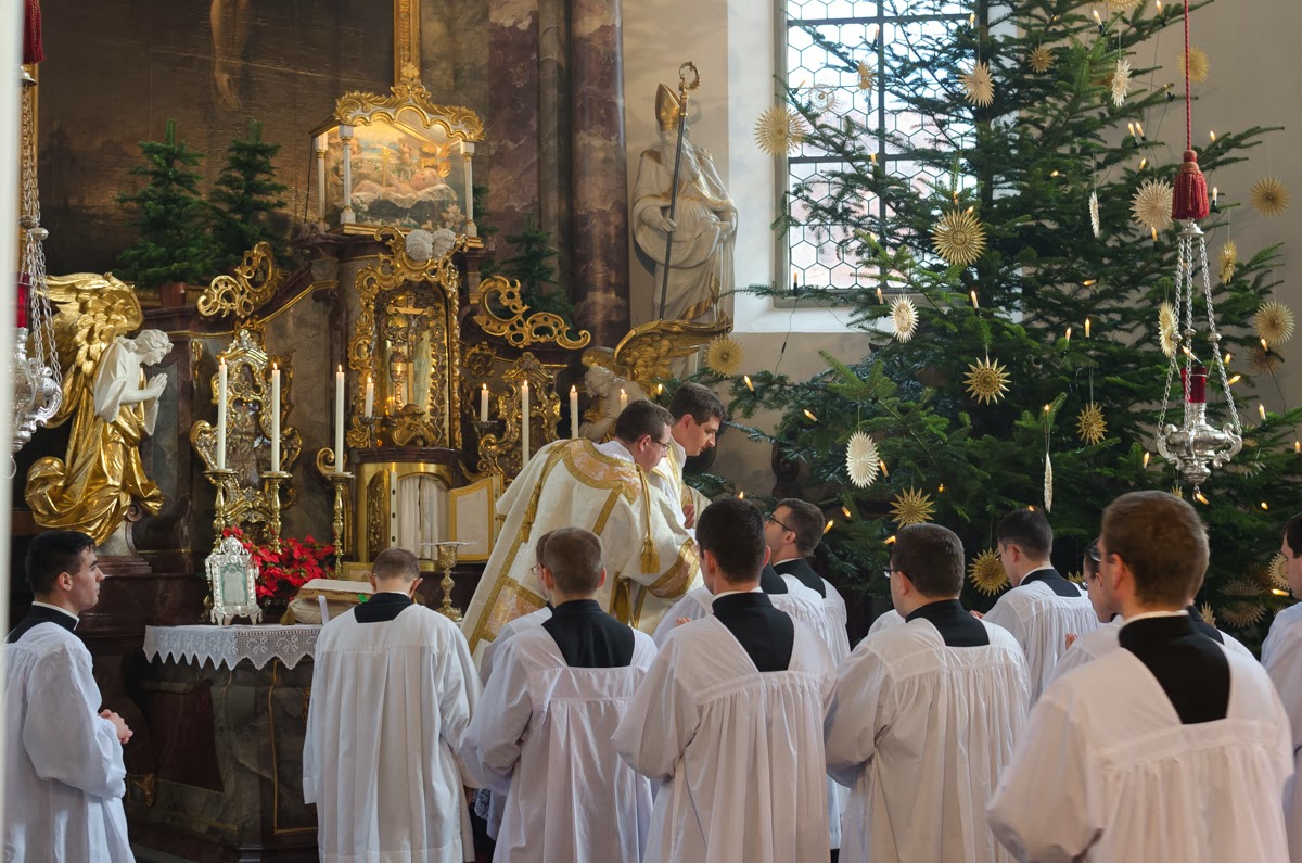 Après environ une heure de route vers l'est, la journée a commencé par la messe solennelle célébrée à l'église paroissiale de Nesselwang par le Recteur, M. l'abbé Patrick du Faÿ, assisté de l'abbé Olivier de Nedde comme diacre et de l'abbé Pierre de Montlaur comme sous-diacre.