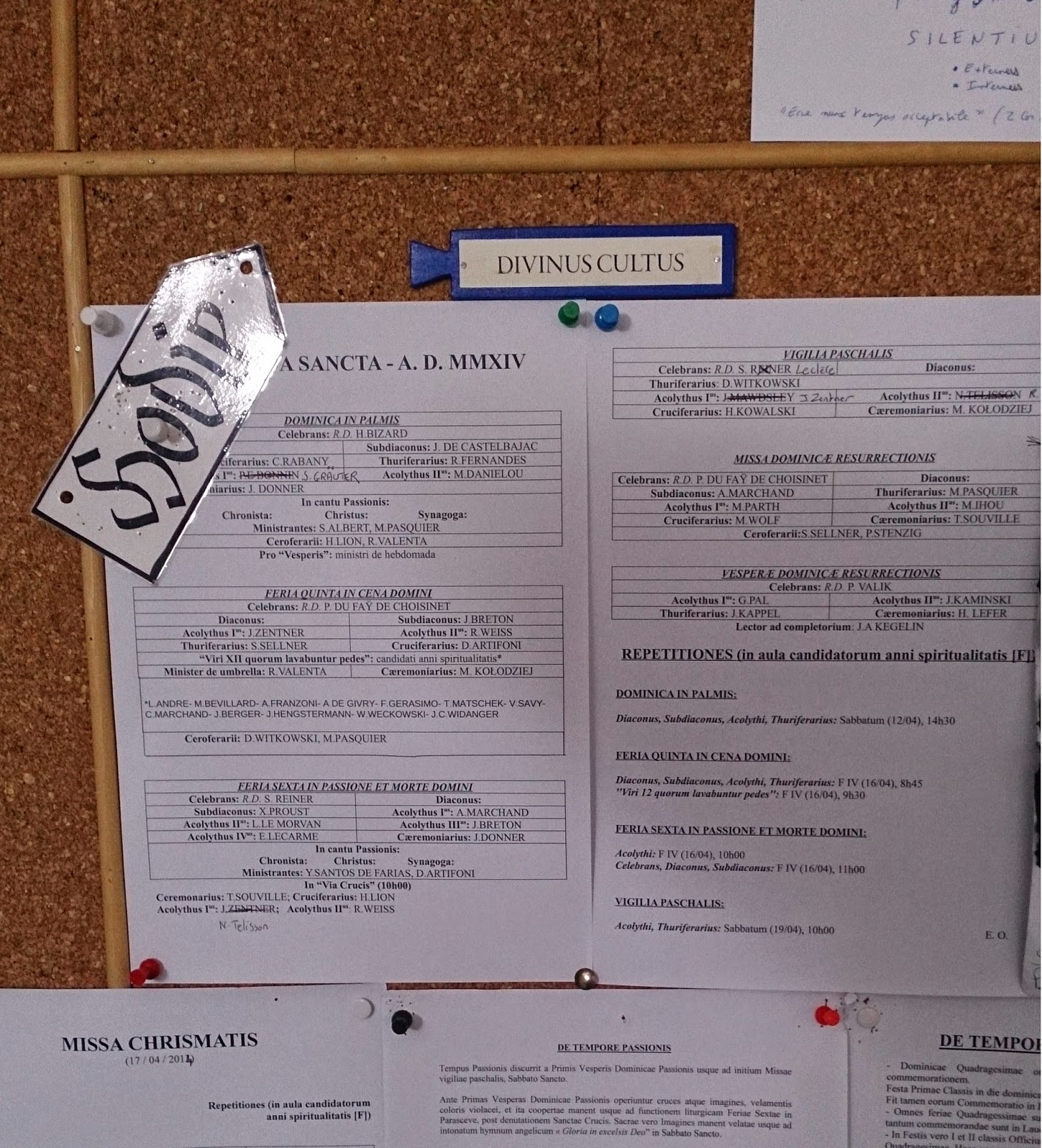 Mais parmi les preuves irréfutables de la survivance de la langue latine, au moins dans notre séminaire, deux méritent d’être mentionnées :