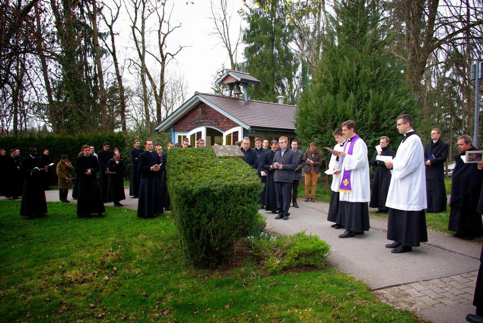 Comme chaque vendredi pendant le Carême, les vêpres étaient remplacées en ce jour par la méditation du chemin de la Croix, dans le parc du sanctuaire.
