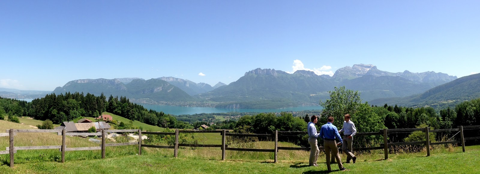 Depuis la "Bergerie", notre maison située à St-Jorioz, ils peuvent apprécier un panorama magnifique : le lac d'Annecy dans son écrin de montagnes.